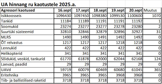 Operatiiv- ja sõjaga seotud info 20. septembril