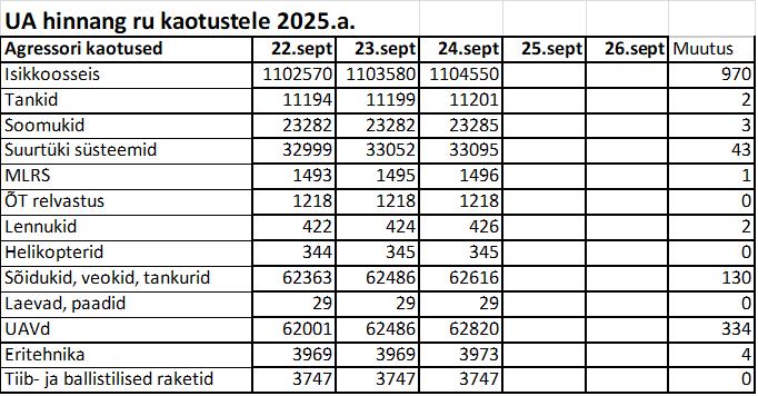 Operatiiv- ja sõjaga seotud info 24. septembril