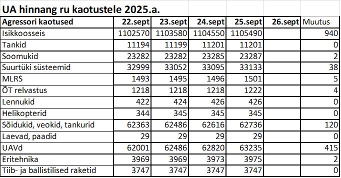 Operatiiv- ja sõjaga seotud info 25. septembril