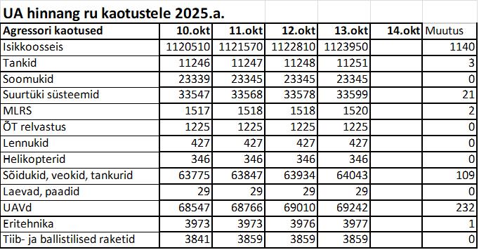 Operatiiv- ja sõjaga seotud info 13. oktoobril
