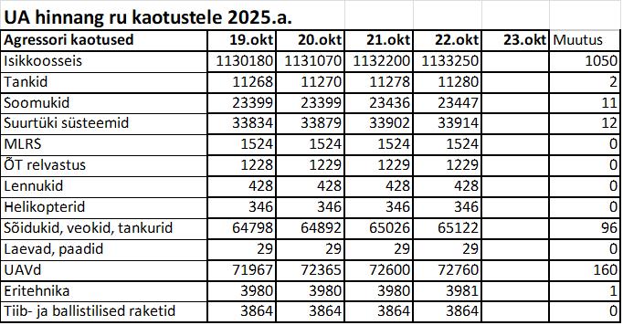 Operatiiv- ja sõjaga seotud info 22. oktoobril