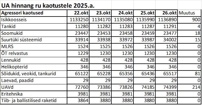 Operatiiv- ja sõjaga seotud info 26. oktoobril