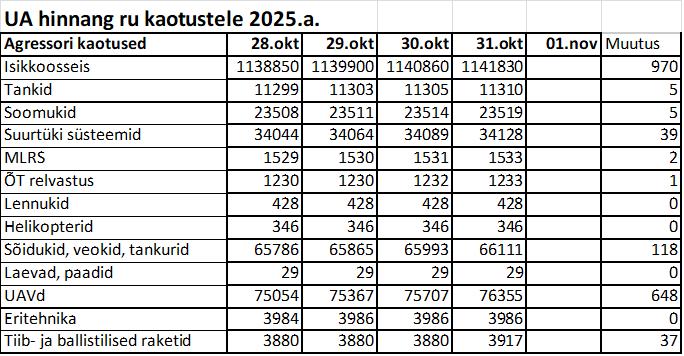 Operatiiv- ja sõjaga seotud info 31. oktoobril