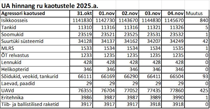 Operatiiv- ja sõjaga seotud info 04. novembril