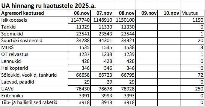 Operatiiv- ja sõjaga seotud info 08. novembril