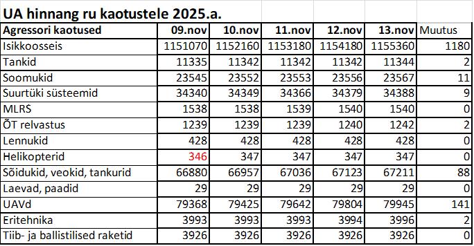 Operatiiv- ja sõjaga seotud info 13. novembril