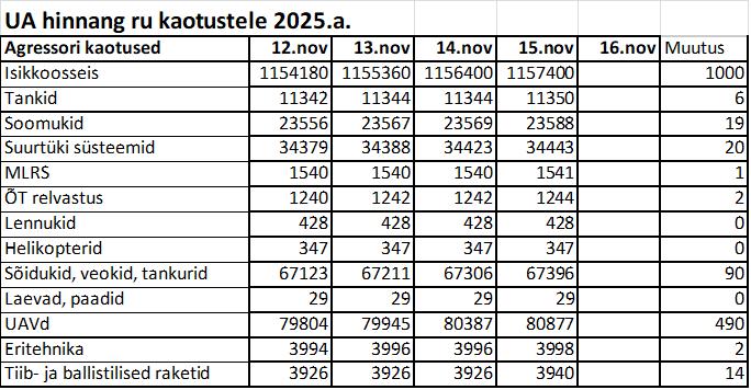 Operatiiv- ja sõjaga seotud info 15. novembril