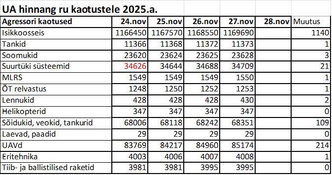 Operatiiv- ja sõjaga seotud info 27. novembril