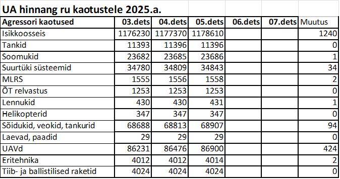 Operatiiv- ja sõjaga seotud info 05. detsembril