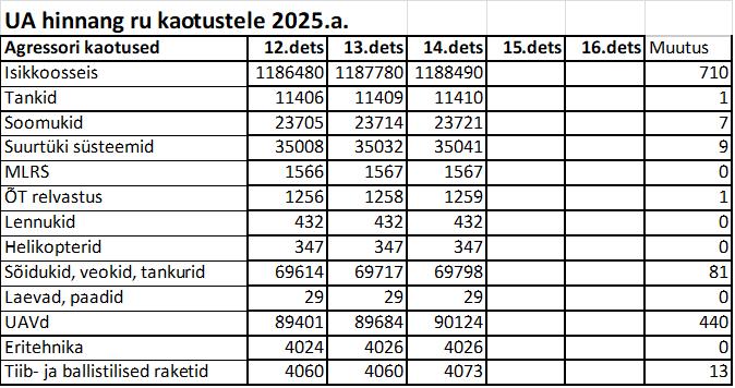 Operatiiv- ja sõjaga seotud info 14. detsembril