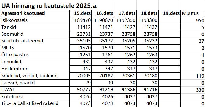 Operatiiv- ja sõjaga seotud info 18. detsembril