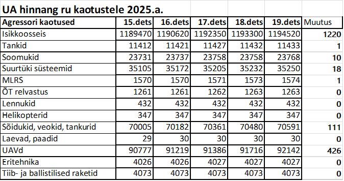 Operatiiv- ja sõjaga seotud info 19. detsembril