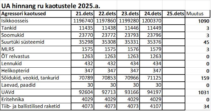 Operatiiv- ja sõjaga seotud info 24. detsembril