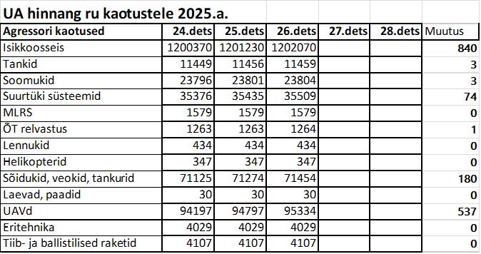 Operatiiv- ja sõjaga seotud info 26. detsembril