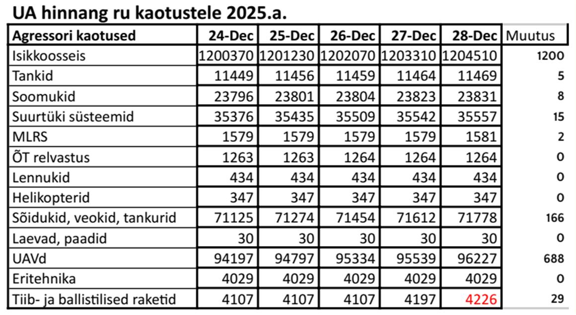 Operatiiv- ja sõjaga seotud info 28. detsembril