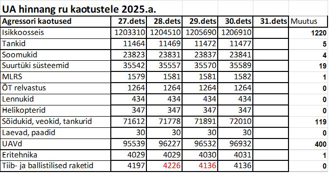 Operatiiv- ja sõjaga seotud info 30. detsembril