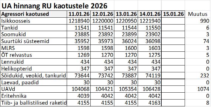 Operatiiv- ja sõjaga seotud info 14. jaanuaril