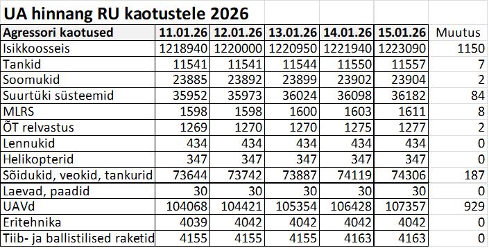 Operatiiv- ja sõjaga seotud info 15. jaanuaril