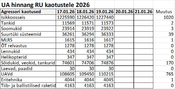 Operatiiv- ja sõjaga seotud info 19. jaanuaril