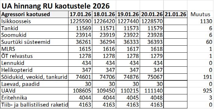 Operatiiv- ja sõjaga seotud info 20. jaanuaril