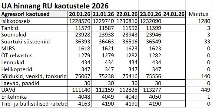Operatiiv- ja sõjaga seotud info 23. jaanuaril