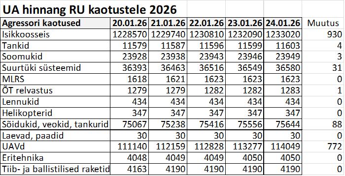 Operatiiv- ja sõjaga seotud info 24. jaanuaril