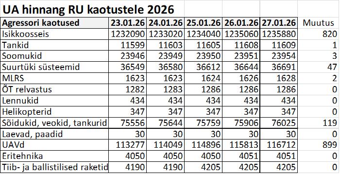 - Kaitseluure viimane uuendus olukorra kohta Ukrainas – 26. jaanuar 2026.