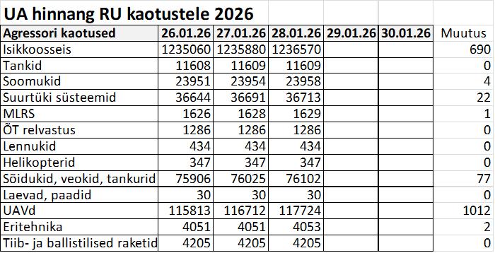 Operatiiv- ja sõjaga seotud info 28. jaanuaril