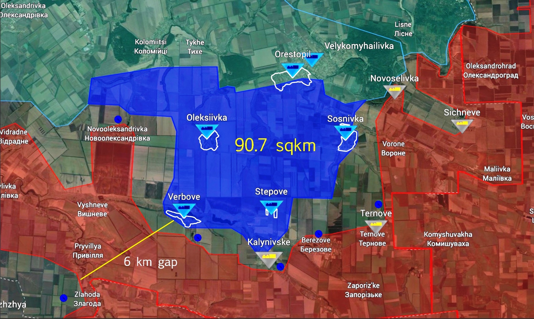 - Ukraina vabastas järgmised asulad: Orestopil, Oleksiivka, Sosnivka, Verbove ja Stepove. Samuti vallutasid nad poole Kalõnivskest ja sisenesid Ternovesse. Edasijõudmine ohustab Venemaa positsioone Võšneve ümbruses.