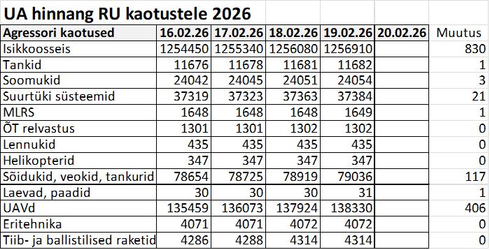 Operatiiv- ja sõjaga seotud info 19. veebruaril