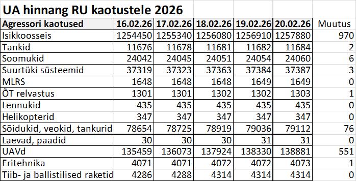 Operatiiv- ja sõjaga seotud info 20. veebruaril
