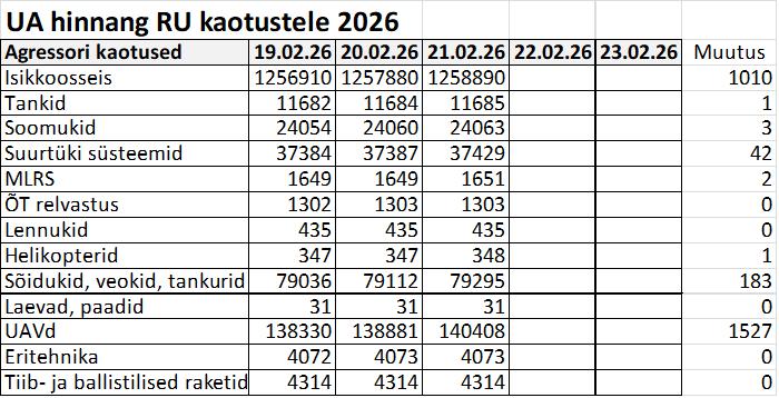 Operatiiv- ja sõjaga seotud info 21. veebruaril