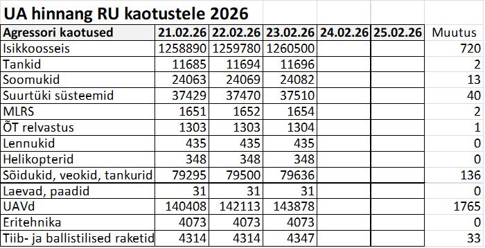 Operatiiv- ja sõjaga seotud info 23. veebruaril