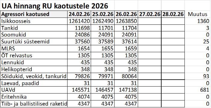 Operatiiv- ja sõjaga seotud info 26. veebruaril