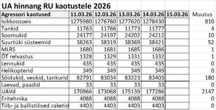 Operatiiv- ja sõjaga seotud info 14. märtsil