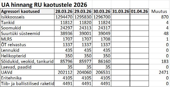 Operatiiv- ja sõjaga seotud info 30. märtsil