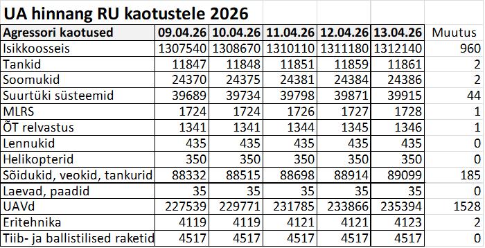 Operatiiv- ja sõjaga seotud info 13. aprillil
