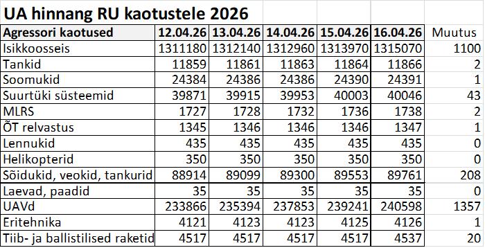 Operatiiv- ja sõjaga seotud info 16. aprillil