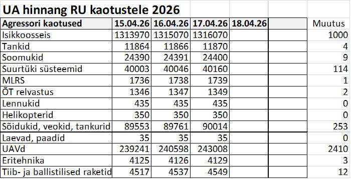 Operatiiv- ja sõjaga seotud info 17. aprillil