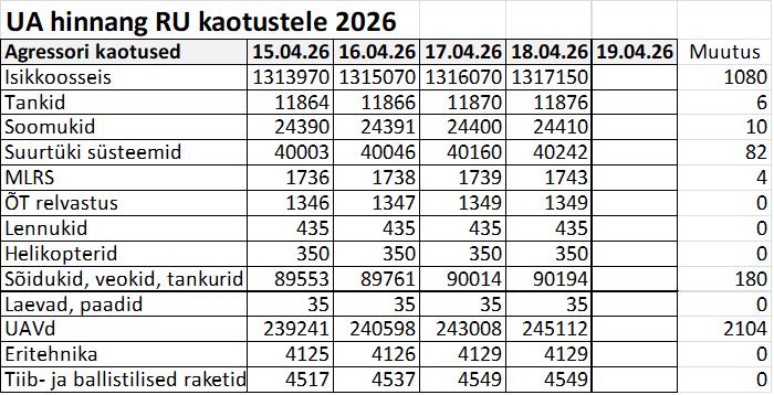 Operatiiv- ja sõjaga seotud info 18. aprillil