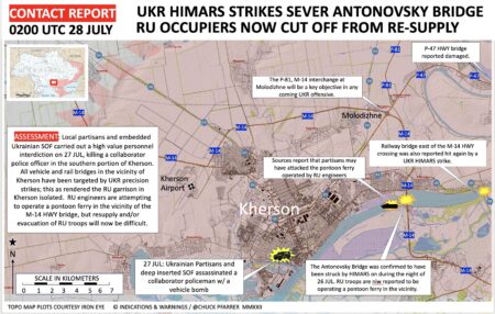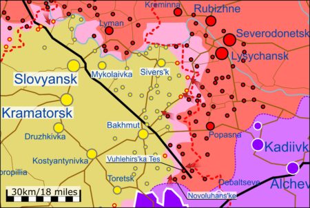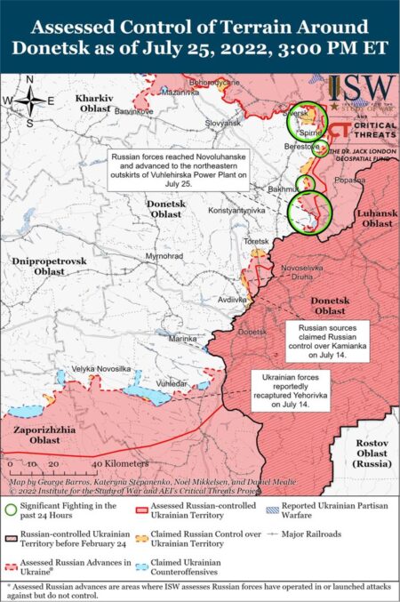 Vene väed on alustanud pealetungi Bahmuti ja Ivano-Darivka piirkonnas ning tõrjunud seejärel Ukraina kaitsjad Berestovest ja Veršõnast välja. Ägedatest lahingutest teatatakse Novoluhanske ja Vuhlehirski elektrijaama piirkonnast, kus vaenlane üritab edasi liikuda. Ukraina väed taganevad elektrijaama lähedusest, et vältida ümberpiiramist. Olukord mujal on üsna stabiilne, Ukraina kaitsjad suudavad Venemaa rünnakuid tõrjuda. Agressor üritas rünnakuid Harkivi linnast põhja pool ja Siverskist idas ning jätkavad oma positsioonide kindlustamist ja tugevdamist Zaporižžja ja Hersoni oblastis. Ukraina väed jätkavad Venemaa tugipunktide tulistamist lõunas.