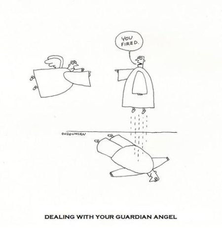 Mees läheb mööda tänavat. „Peatu“, kostab hääl tema selja tagant. Mees peatub ja suur kivi kukub katuselt otse tema ette. Mees vaatab üllatunult kivi, keerab ümber ning otsib seda kes teda hoiatas. Ei kedagi. Läheb siis edasi, tahab sõiduteed ületada kui sama hääl tema selja taga käsib tal peatuda. Mees peatub, nurga tagant tuleb suure…