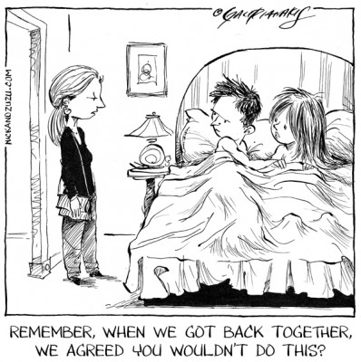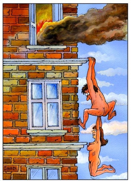 Kaks vana sõpra saavad kokku ja pajatavad teineteisele kuidas neil eluratas veerenud on. „Just abiellusin“, räägib esimene. „Mul sai villand üksiolemisest, väljas söömisest, maja koristamisest, nõude ja pesu pesemisest ning kortsus riietega ringi käimisest.“ „Üllatav“, ütleb teine sõber. „Ma just lahutasin nendel samadel põhjustel.“
