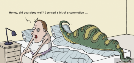 Aadu vähkreb voodis ja üritab magama jääda. Kuid ei saa sest naabri koer haugub vahetpidamata. Lõpuks saab Aadul sellest villand, tõuseb voodist ja läheb uksest välja. Mõne aja pärast tuleb tagasi ja heidab voodisse. “Kus sa käisid”, pärib Maali. “Naabri koer haugub ikka veel!” “Käisin väljas ja tõin naabri koera meie aeda”, vastab Aadu. “Eks…